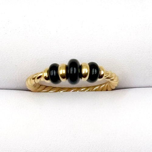 David Yurman 18k Yellow Gold Onyx Rio Rondelle Ring