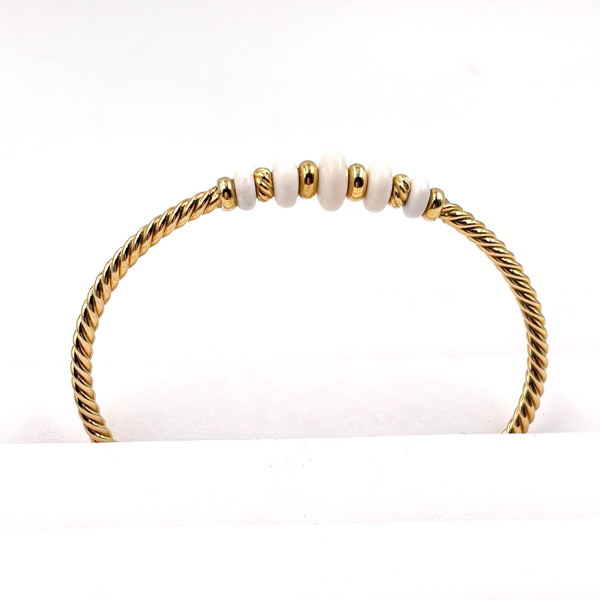 David Yurman 18k yellow gold white agate cuff cable bracelet, in excellent condition