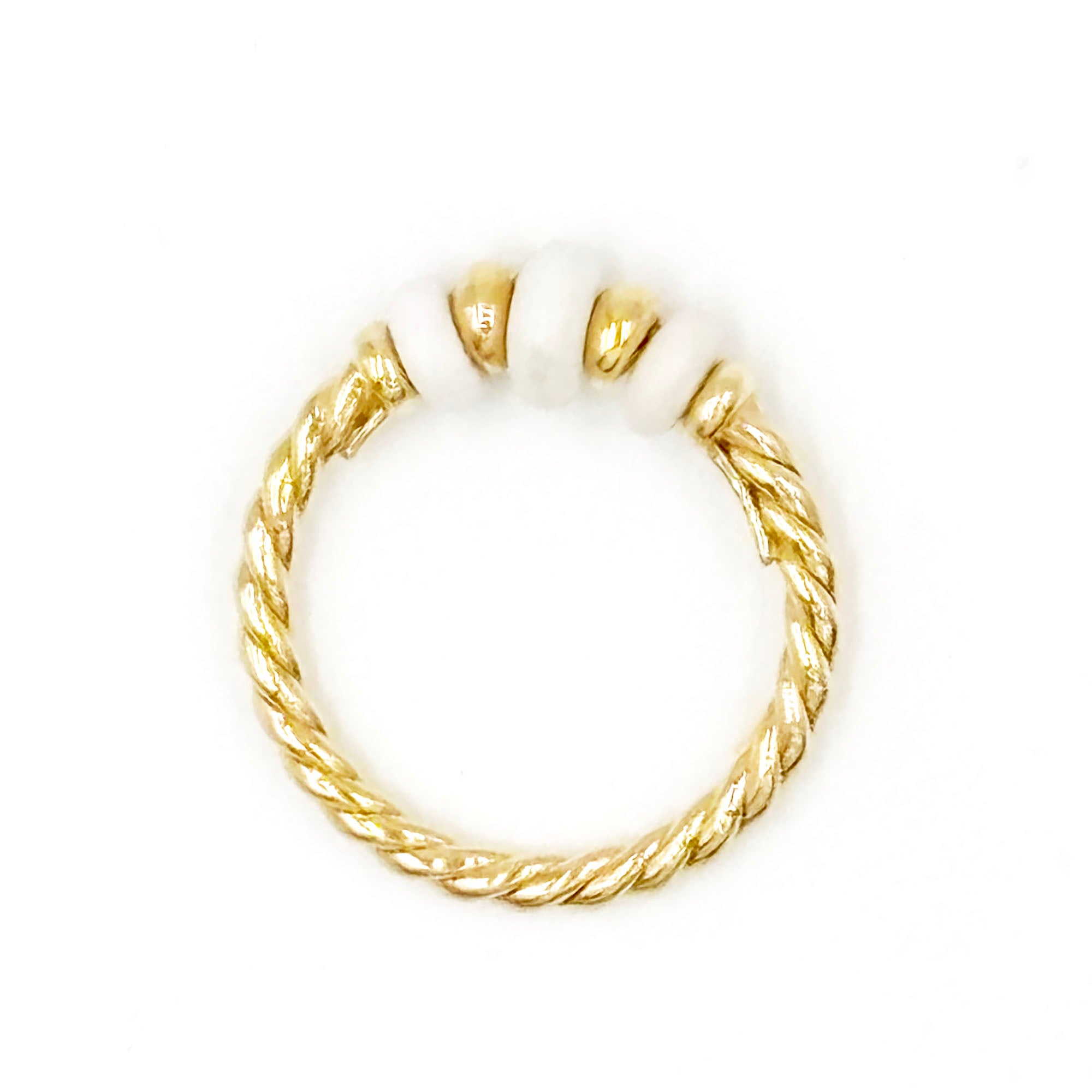 David Yurman 18k yellow gold white agate rio ring band, in excellent condition